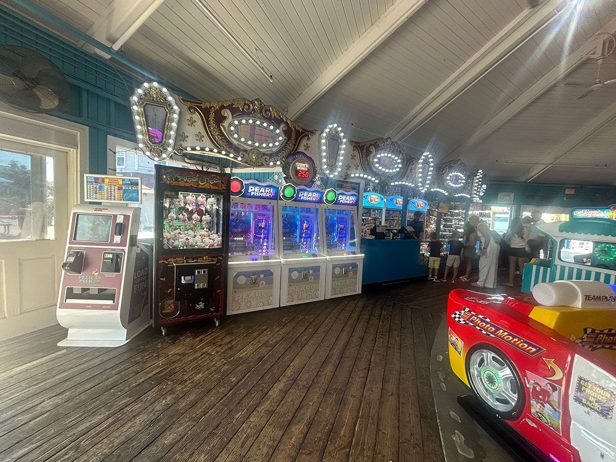 Pelican Pier Pavilion is a family-friendly entertainment venue and arcade located at Shoreline Village in Long Beach, California. We host the latest in classic arcade games along with a variety of retro games, a vintage carousel, and our renowned prize redemption center, as well as outdoor seating. Located on the second floor near the Family Lounge, we offer indoor carnival rides, carnival games, video games, ticket games, redemption center, cranes, plushies and much more! We specialize in arcade fun for kids, adults, and families. Games for every age!